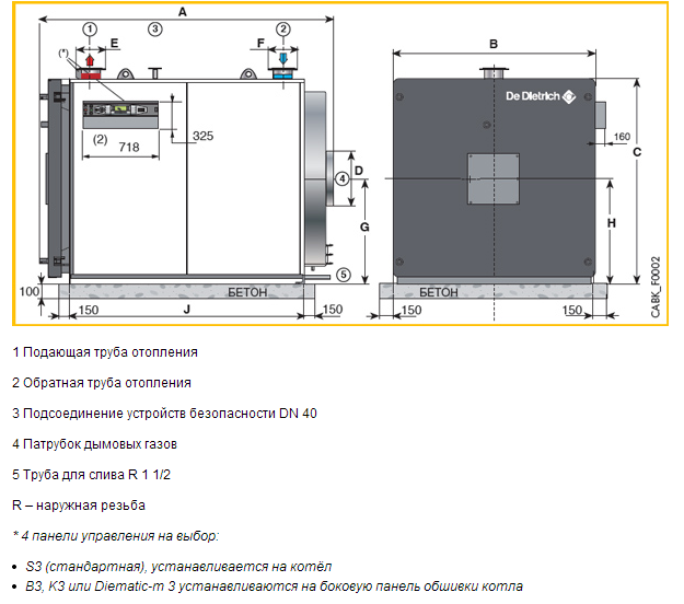Напольный стальной котел De Dietrich CABK PLUS 100 большой мощности, с топкой под избыточным давлением.